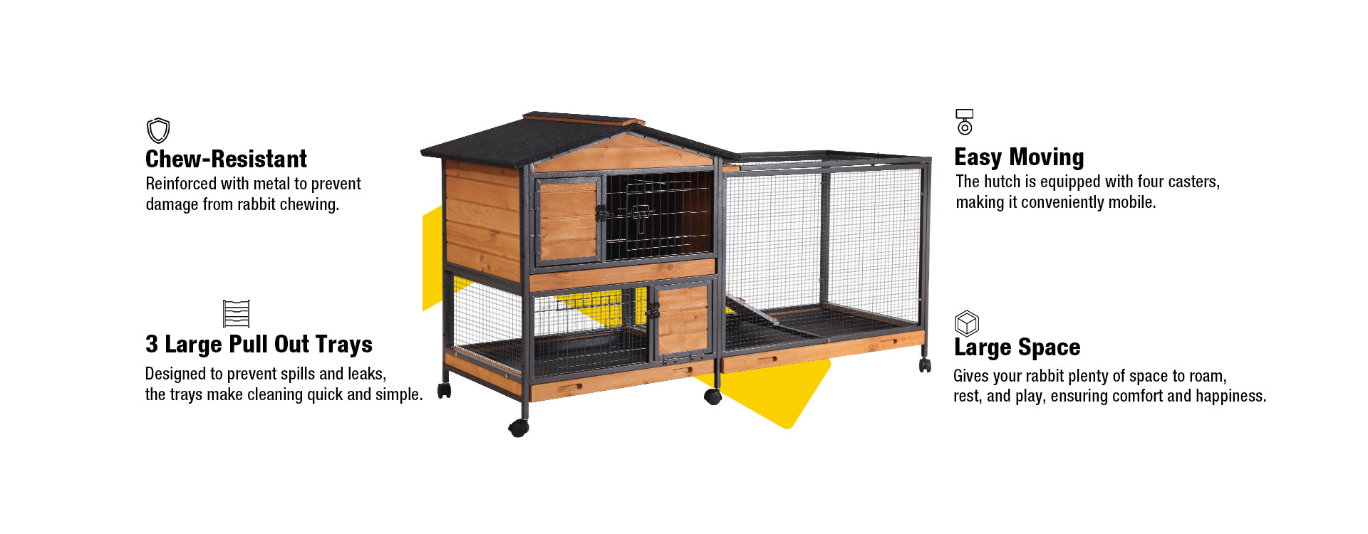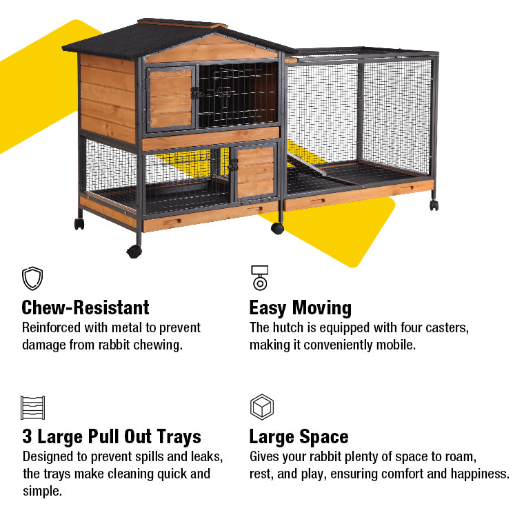 - Chew-Resistant Metal Frame: Reinforced with metal to prevent damage from rabbit chewing, ensuring the hutch lasts longer.