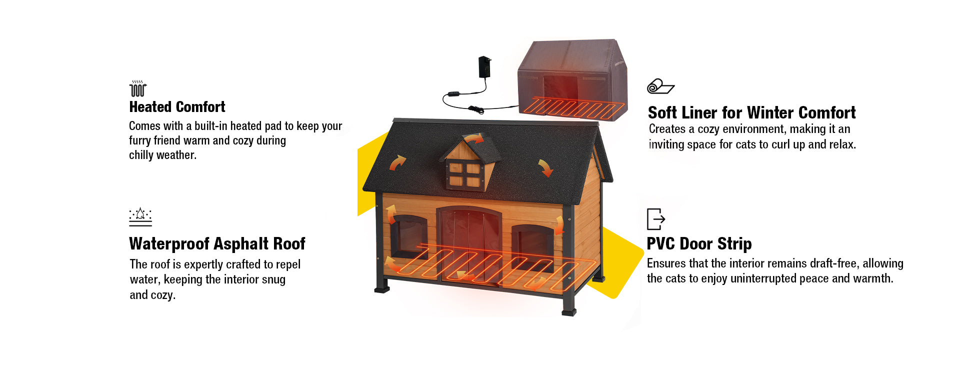 Durable Construction: Built with a sturdy iron frame, this heated dog house is designed to withstand outdoor conditions and provide a safe, comfortable shelter for your pet.