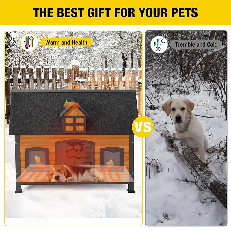 Insulated Design Construction: This dog house with 6 sides all-around insulated construction. Crafted with 3-layer insulated materials (solid wood+plywood+ liner) ensuring your pet stays warm in winter. The dog house provides a cozy haven, keeping your dog warm during cooler seasons.