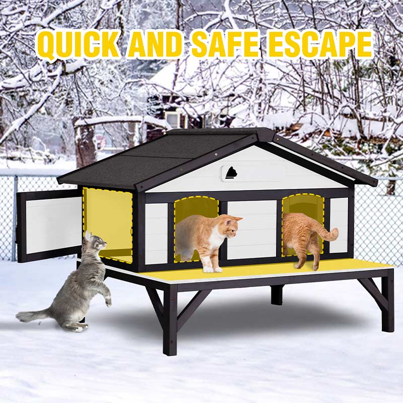 Keep your feline warm and protected year-round with our durable wooden heated cat house. Featuring a heating pad, insulation, PVC door flap, asphalt roof, and raised floor for all-weather comfort. Perfect for indoor or outdoor use! 🐾