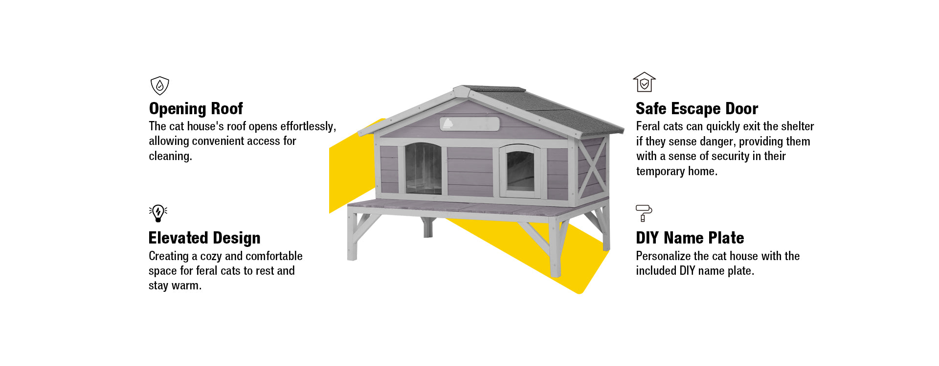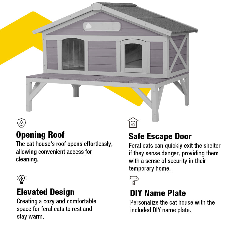 DIY Name Plate: Personalize the cat house with the included DIY name plate, adding a touch of care and warmth to this safe haven for feral cats.